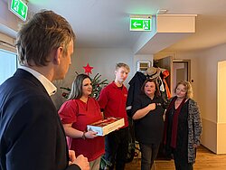 „Die Weihnachtszeit ist eine besondere Gelegenheit, um Danke zu sagen und denjenigen, die oft im Hintergrund wirken, unsere Wertschätzung zu zeigen. Mit einem Besuch und einem kleinen, persönlichen Geschenk möchte ich den Menschen an ihren Arbeitsplätzen eine Freude machen und sie wissen lassen, dass ihre Leistung und ihr Engagement nicht unbeachtet bleiben“, erklärte Dr. Schäfer. Er nahm sich Zeit für Gespräche und tauschte sich zu alltäglichen Herausforderungen und Bedürfnissen aus. Darüber hinaus war es ihm ein großes Anliegen, am weihnachtlichen Kaffeekränzchen der Bewohner des Pflegeheims Ronneburg teilzunehmen.